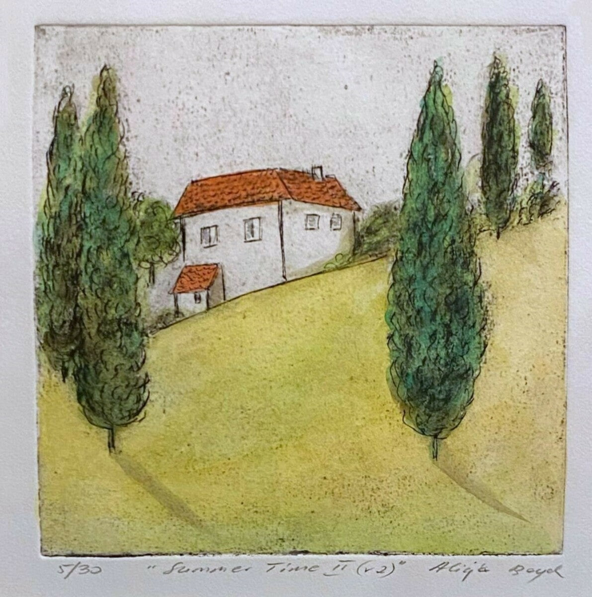 This artwork comes framed in a solid oak timber frame with an off-white mount. All artworks are framed on site using conservation quality materials.