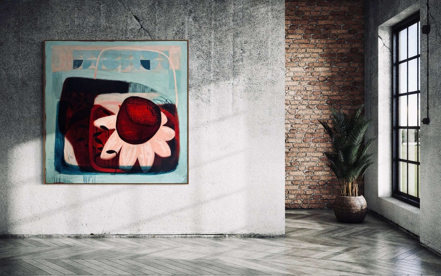 This artwork is currently framed in a natural sustainable timber floating tray frame.