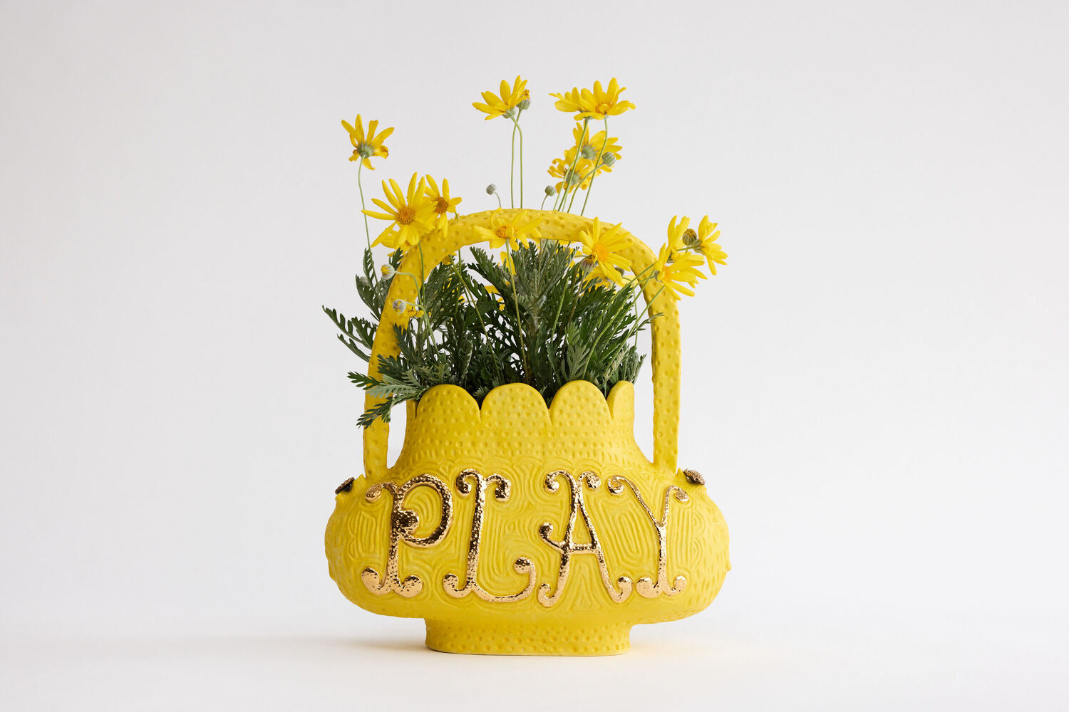 Some people read this pot as "nice play" but my intention was for it to say "play nice"... thats my gentle anti war statement... about as political as I get. It can also just say "play" or just say "nice"... there are many ways to read it.