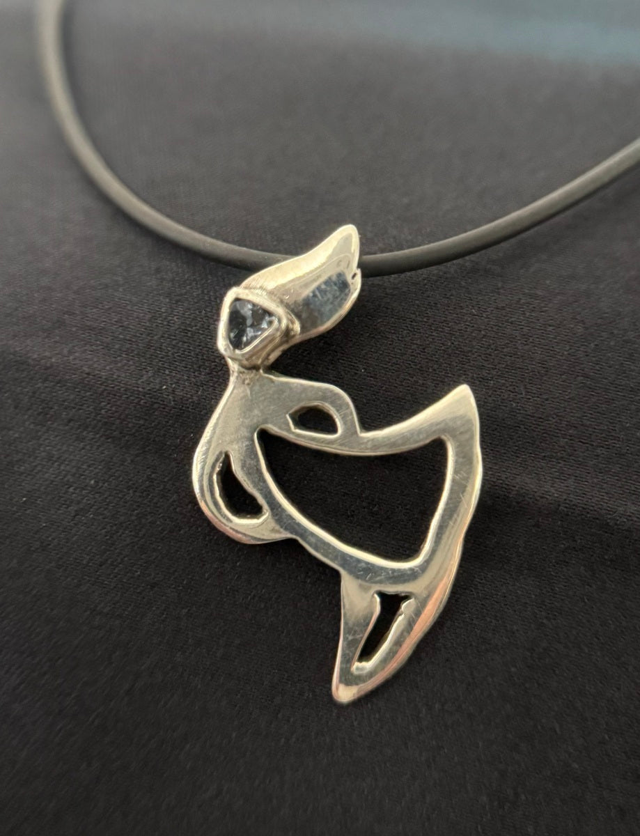 Joyous gem girl pendant in sterling silver, set with blue spinel, on a 42 cm length neoprene.