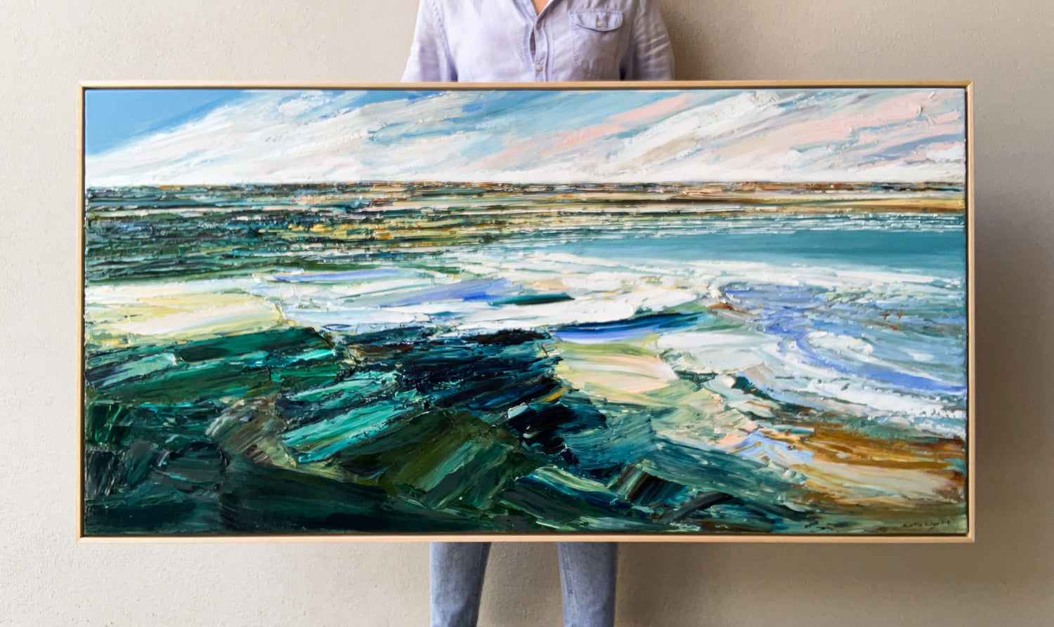This abstract, impressionist beachscape is an original painting inspired by Katie’s love of Australia’s incredible coastline.