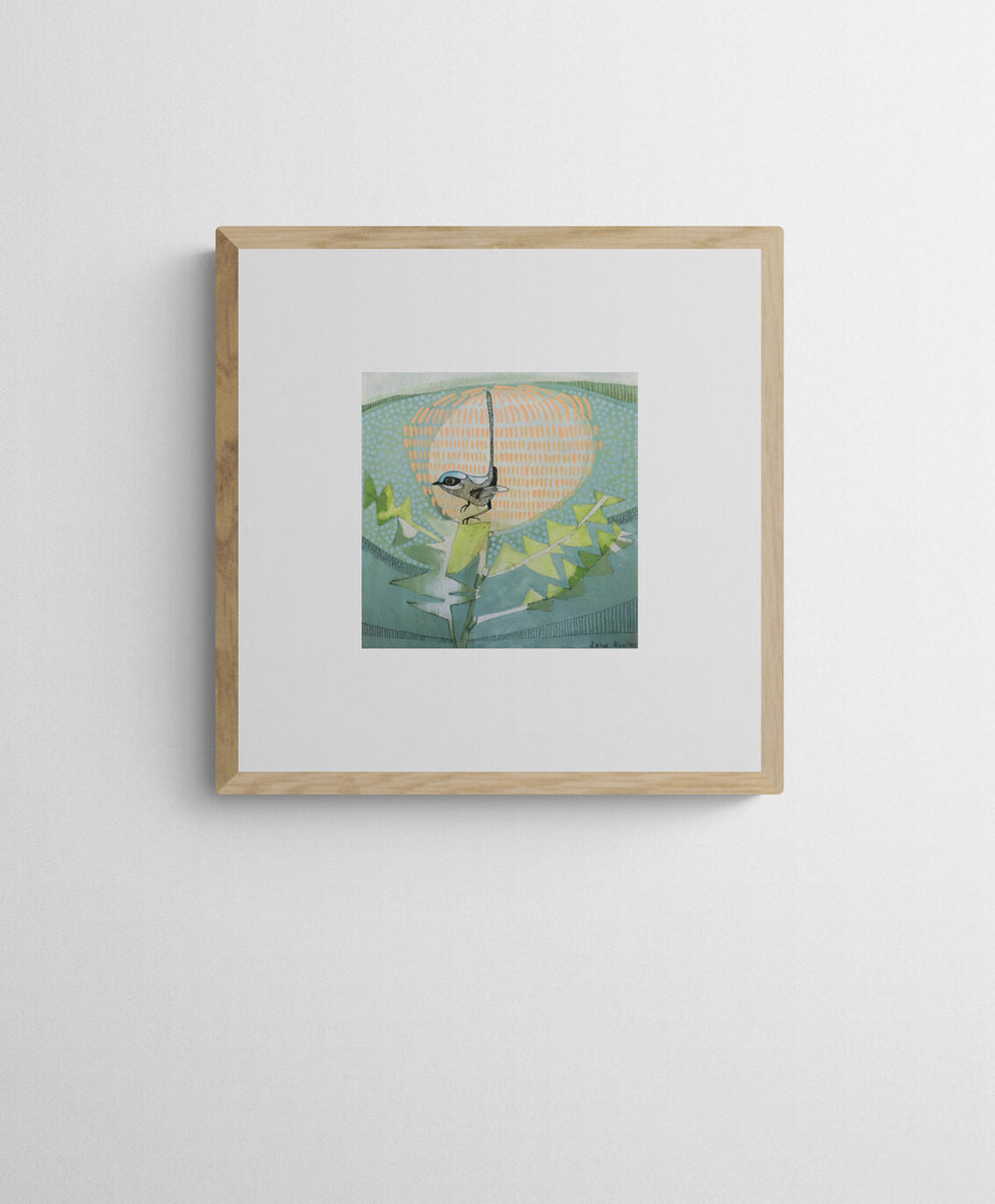 This artwork is sold framed in a natural oak timber frame with an off white mount. All artworks are framed on site using conservation quality materials.