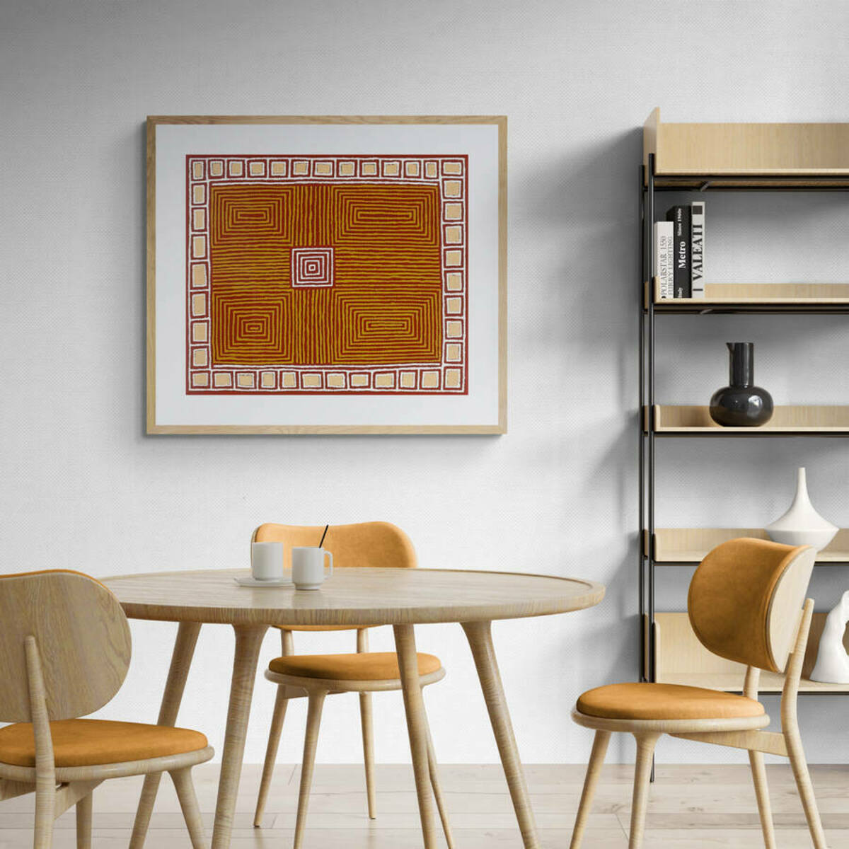This artwork comes framed in a solid timber frame with an off-white mount. All artworks are framed on site using conservation quality materials.