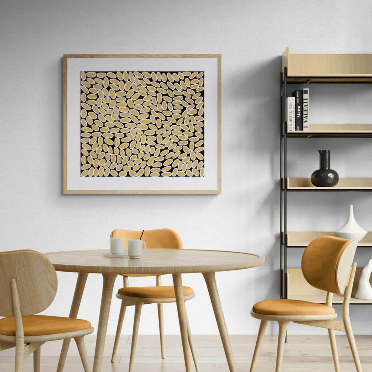 This artwork comes framed in a solid timber frame with an off-white mount. All artworks are framed on site using conservation quality materials.