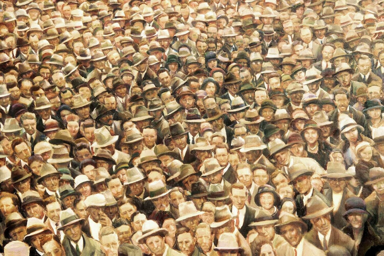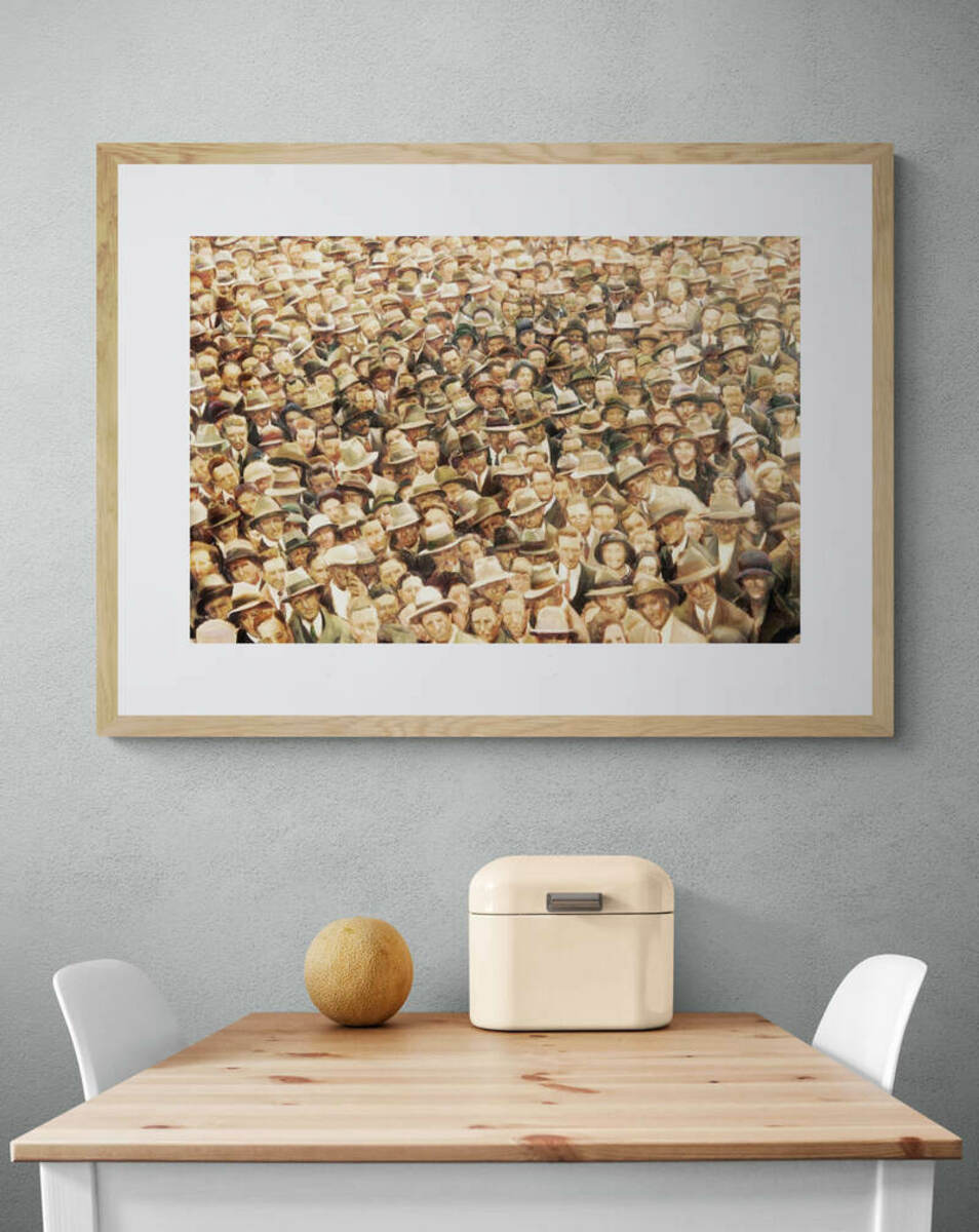 Hubert Opperman was a much cherished Australian sporting hero of the 1920s and 1930s, whose cycling achievements inspired millions during the difficult Depression years. This artwork was inspired by the large crowds gathered by his return to Australia after great success in overseas events.