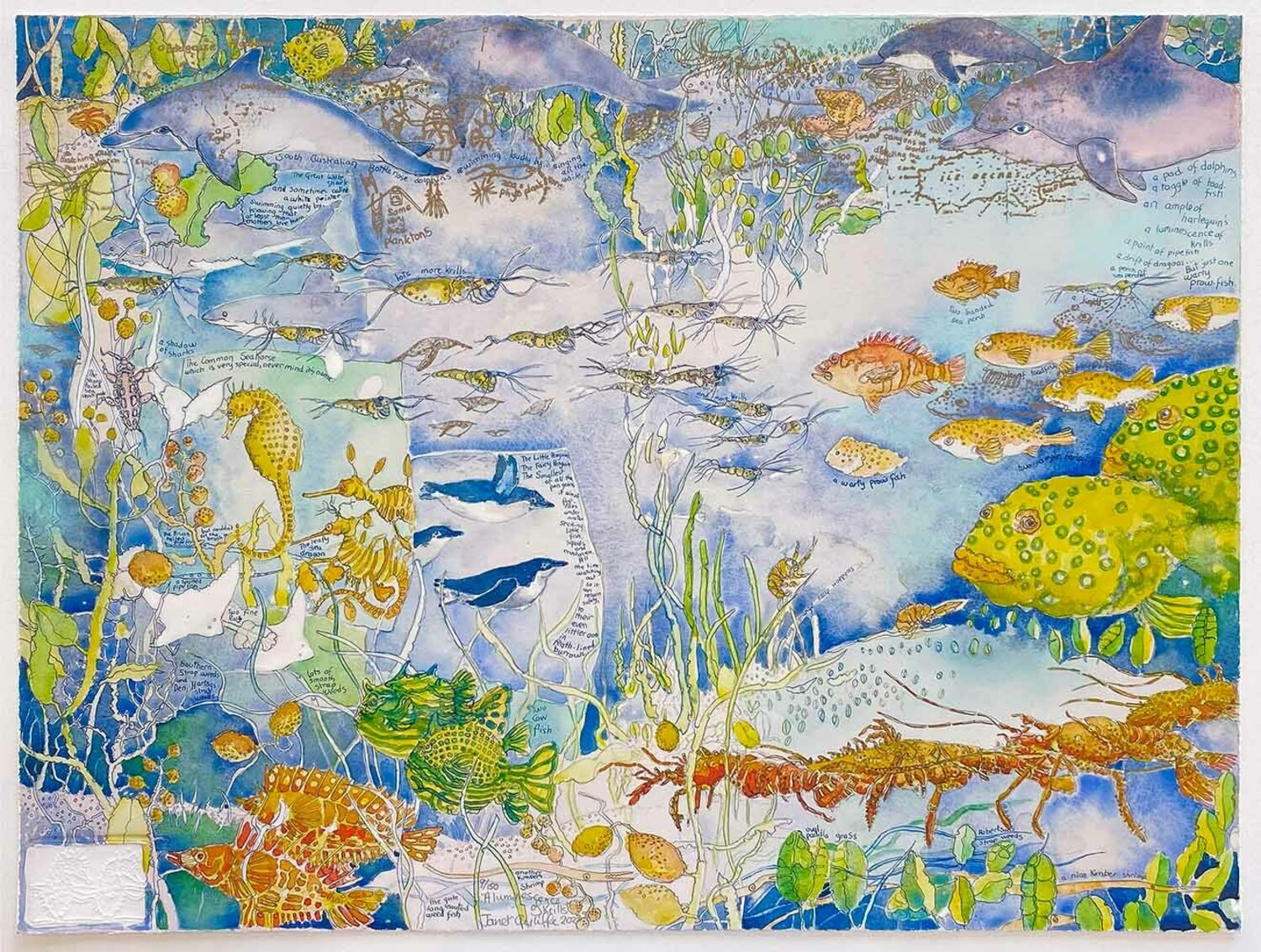 Janet’s etchings incorporate multiple printmaking process including multiple plates with different colours, as well as chine collé, archival digital print and hand-painted elements. Her work is inspired from her inner world, her family and the landscape of the Adelaide Hills and her childhood home on Kangaroo Island.