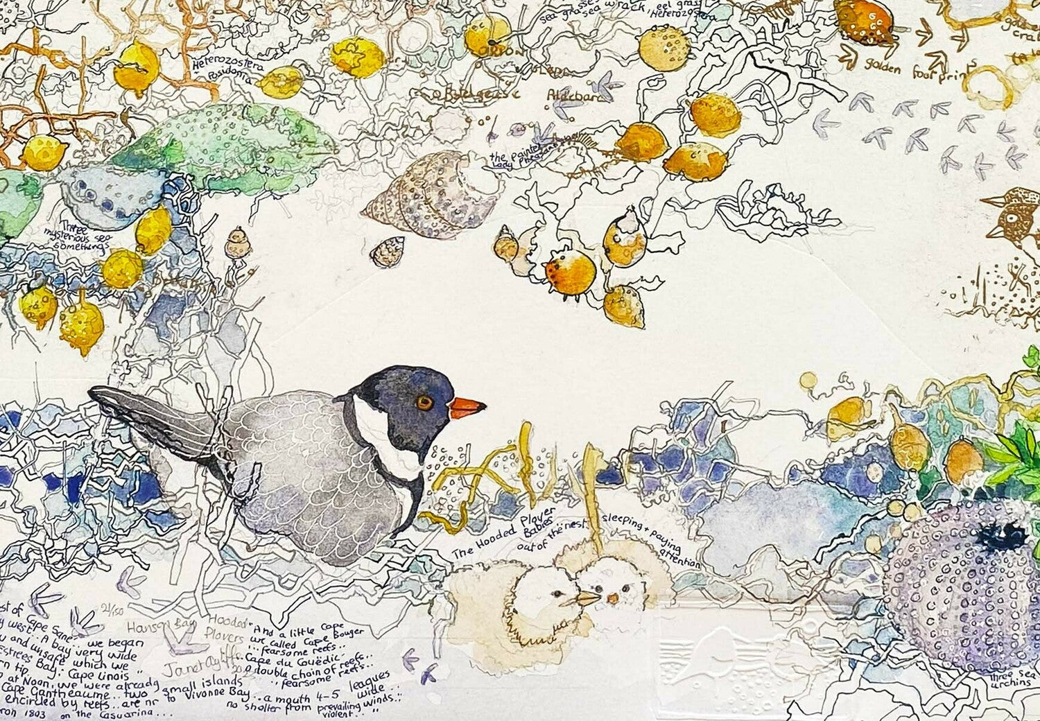 Janet’s etchings incorporate multiple printmaking process including multiple plates with different colours, as well as chine collé, archival digital print and hand-painted elements. Her work is inspired from her inner world, her family and the landscape of the Adelaide Hills and her childhood home on Kangaroo Island.