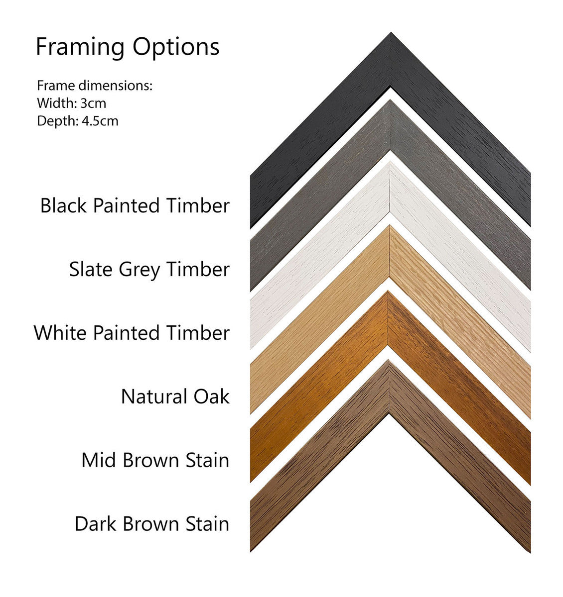 Please contact us directly if your framing requirements differ from the selections offered.