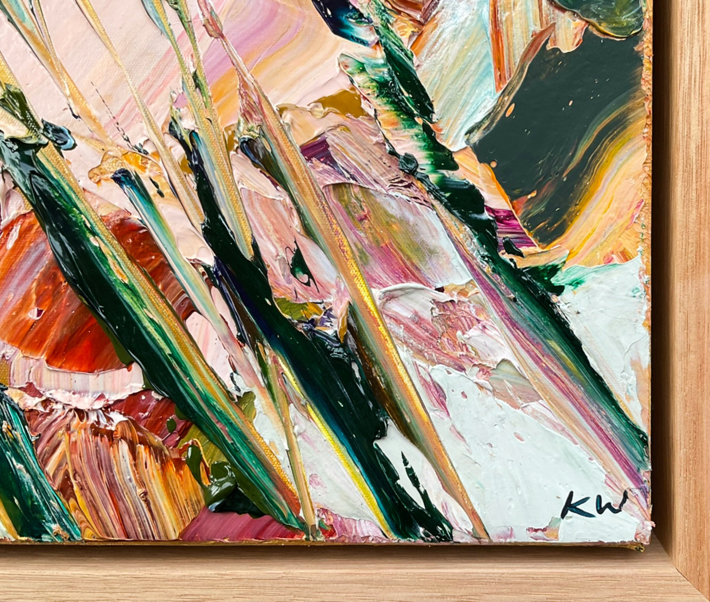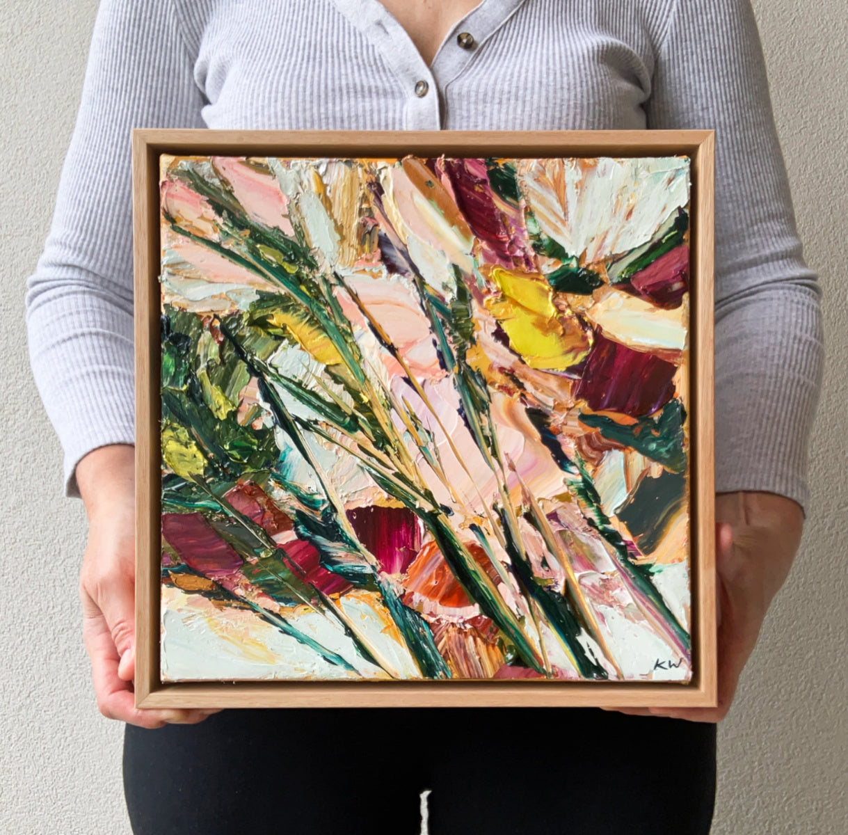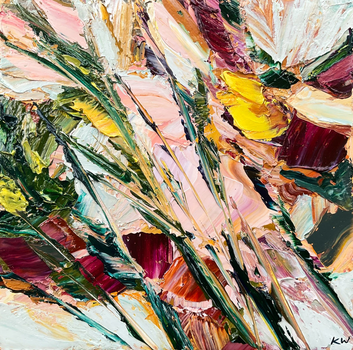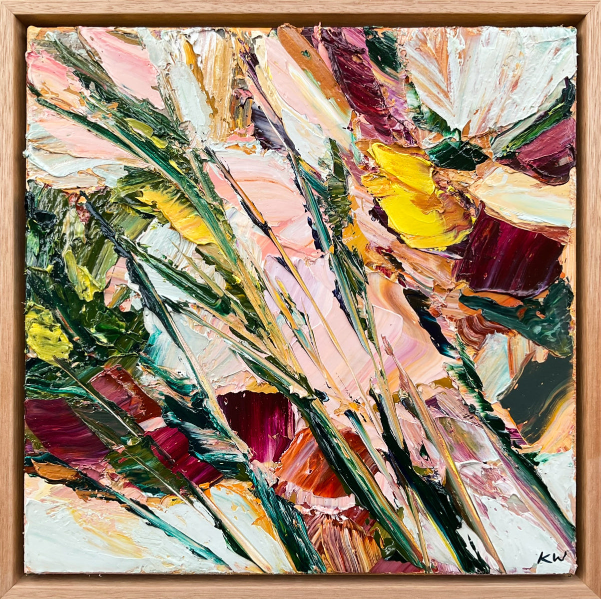 This abstract, impressionist botanical piece is an original painting inspired by Katie’s love of the transient beauty of flowers.