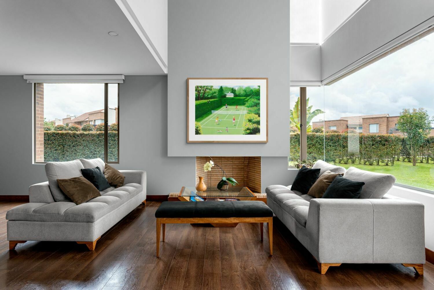 This artwork comes framed in a solid timber frame with an off-white mount. All artworks are framed on site using conservation quality materials.