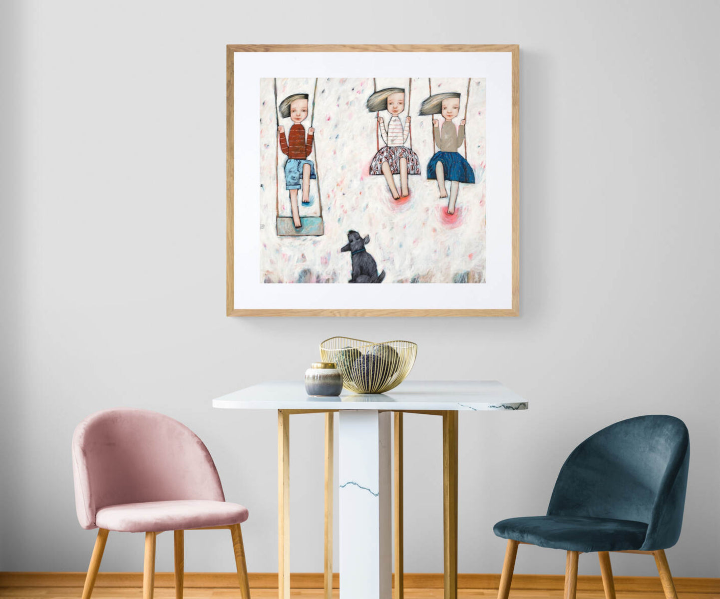 This artwork comes framed in a solid timber frame with an off-white mount. All artworks are framed on site using conservation quality materials.