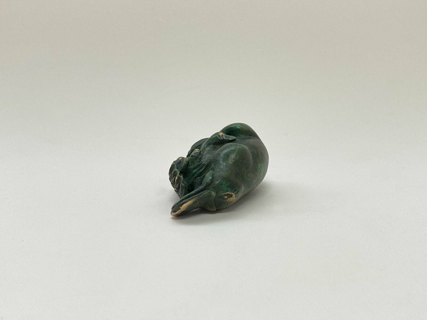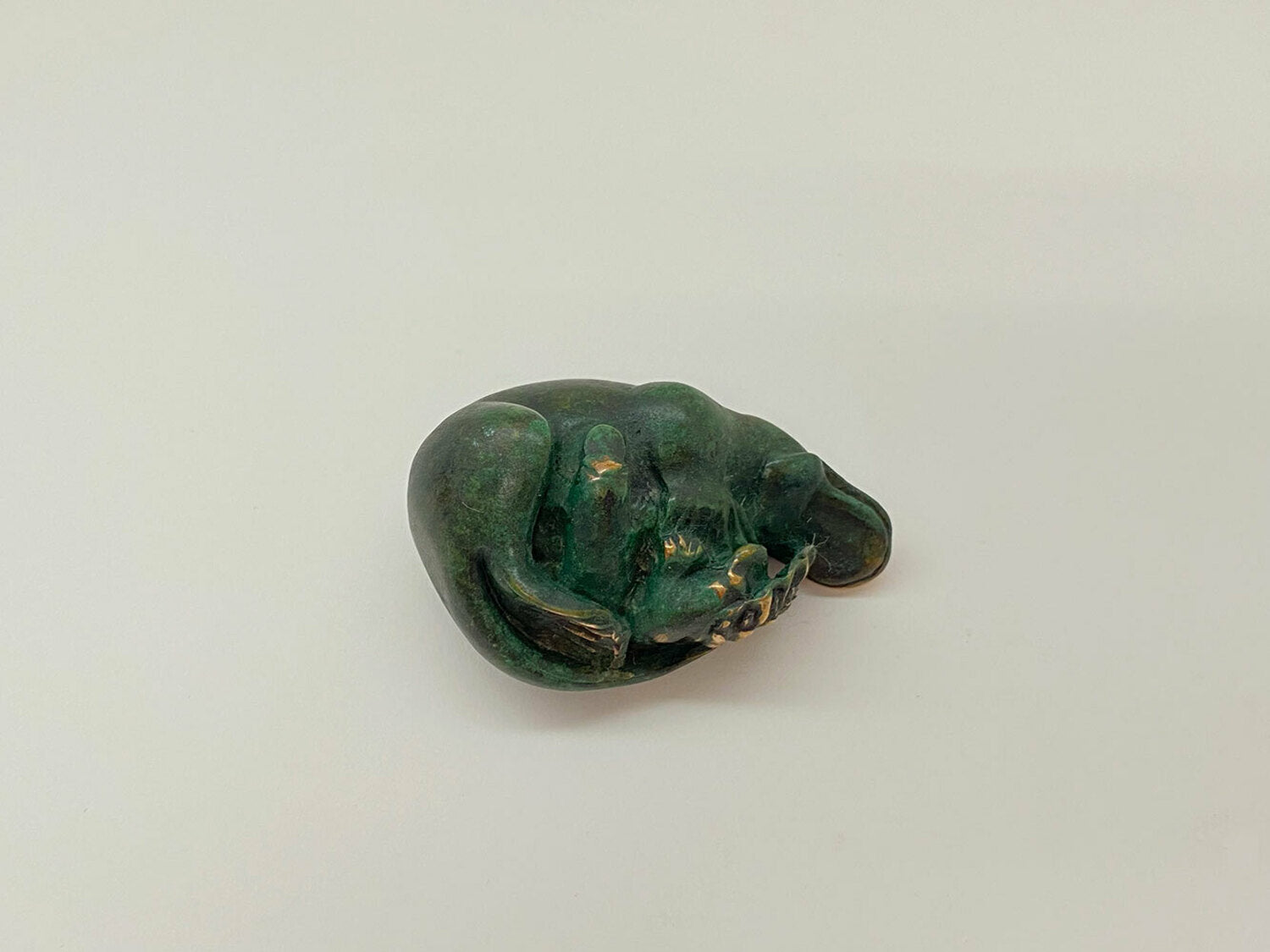 This cast bronze miniature edition by Adelaide sculptor Silvio Apponyi is finished by hand, so the patina and polish marks vary from piece to piece. Where possible, the images are the actual stock we have on hand, but please contact the gallery if you would like us to check this and if needed send you a pic of the actual piece in stock.
