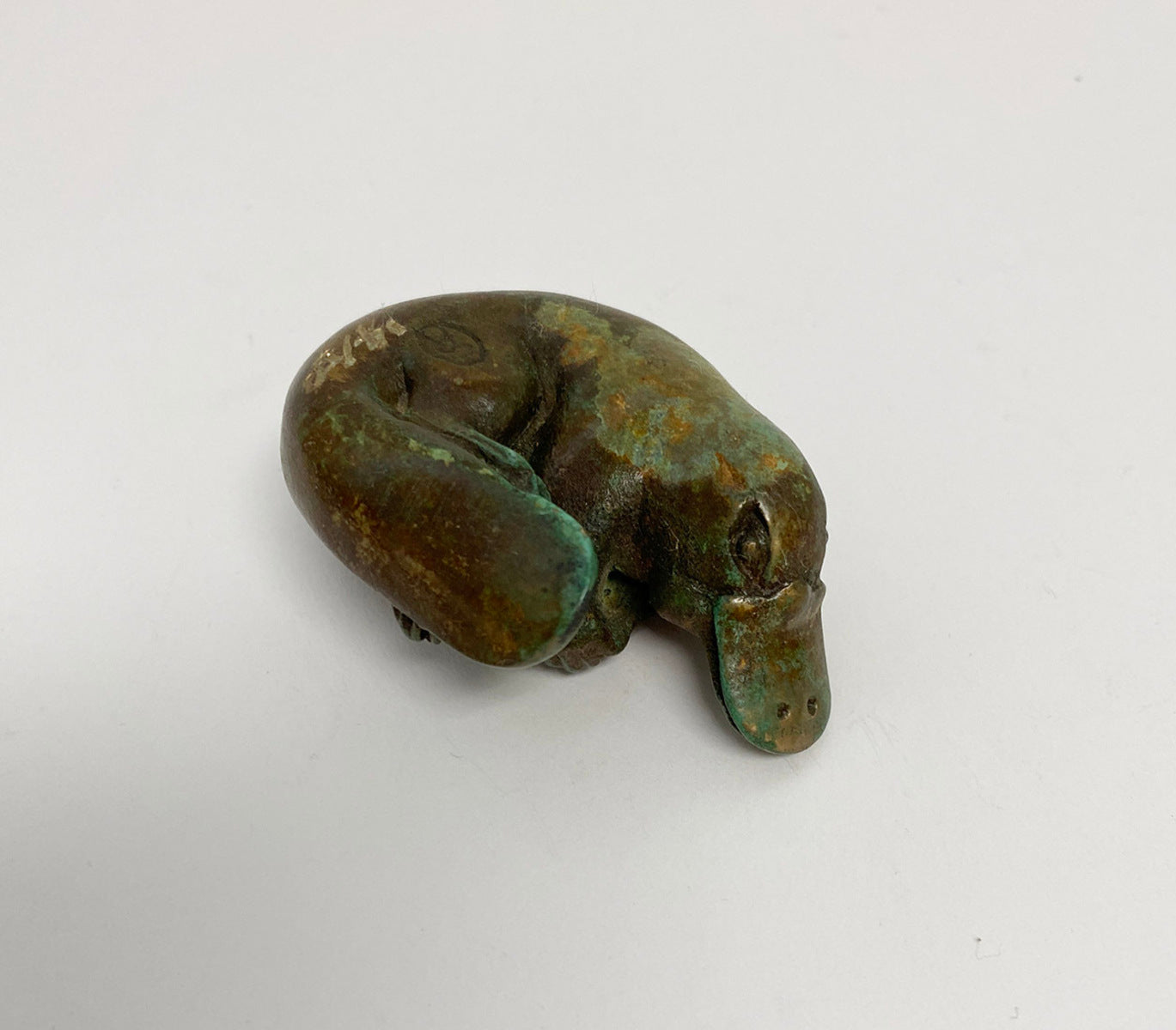This cast bronze miniature edition by Adelaide sculptor Silvio Apponyi is finished by hand, so the patina and polish marks vary from piece to piece. Where possible, the images are the actual stock we have on hand, but please contact the gallery if you would like us to check this and if needed send you a pic of the actual piece in stock.