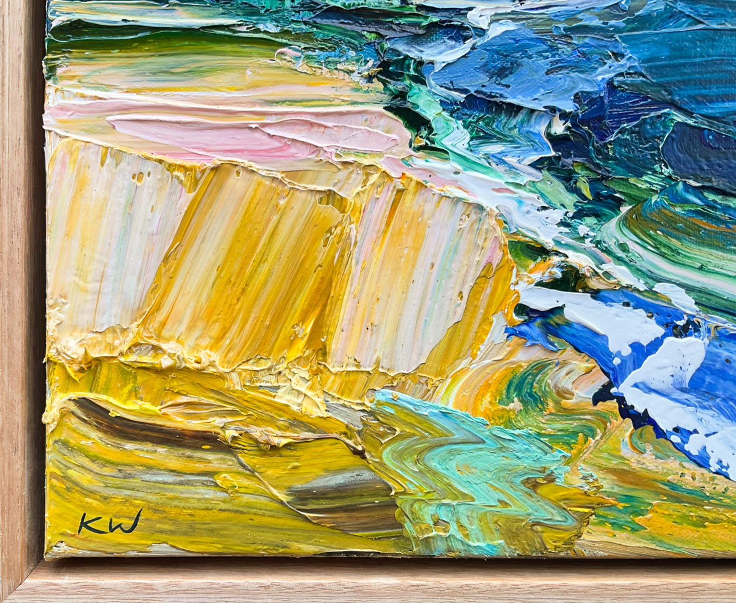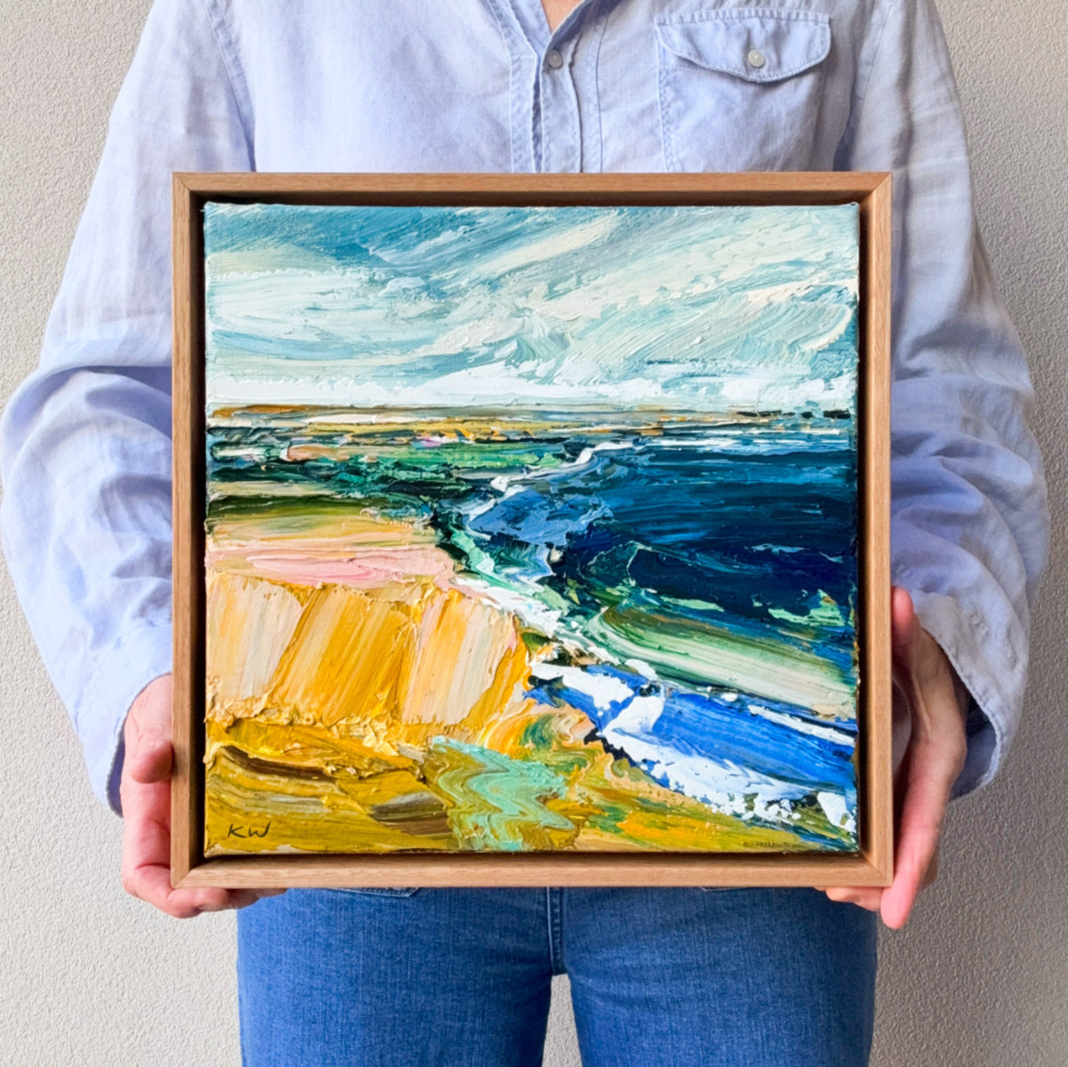 This original painting by Adelaide artist Katie Wyatt is signed on the front and back and finished in a custom, hand-made shadow box oak frame. The piece is ready to hang, with a certificate of authenticity included.