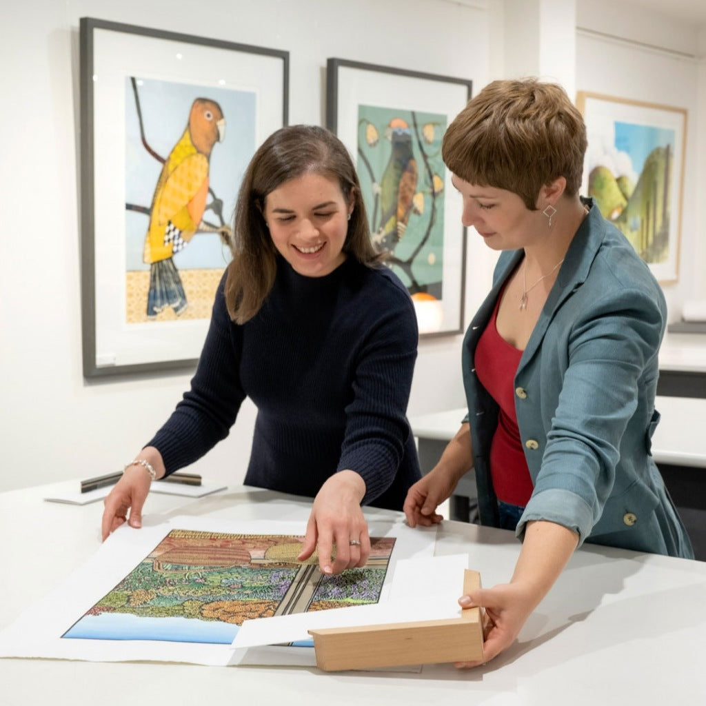 We cannot print here at the gallery, but can discuss the best options and recommend the appropriate printers for your needs, as there are a number of good options nearby.