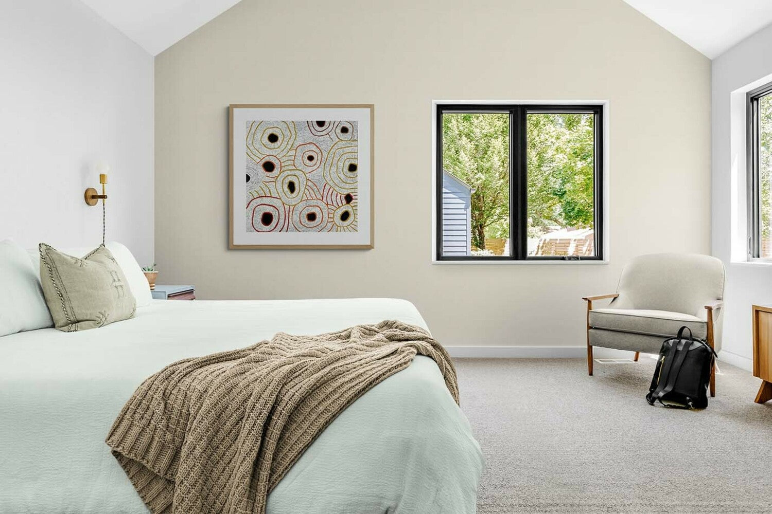 This artwork comes framed in a solid timber frame with an off-white mount. All artworks are framed on site using conservation quality materials.
