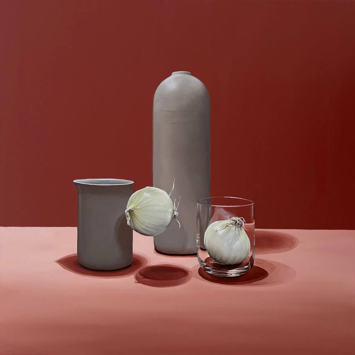 This artwork is currently framed in a custom painted dark red floating tray frame.