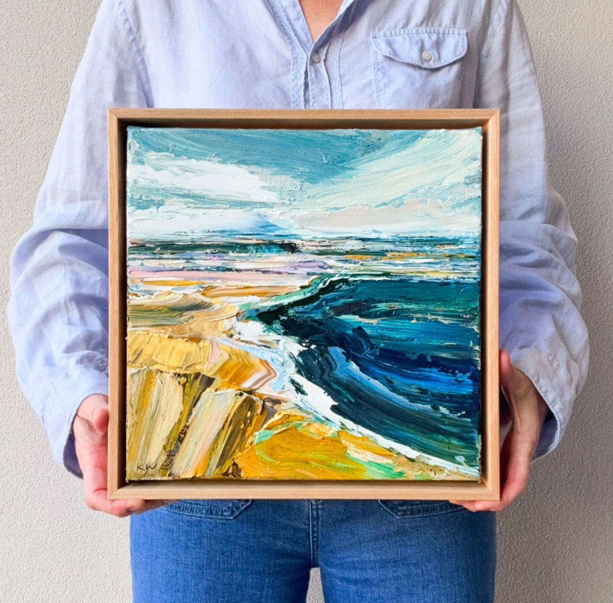 This original painting by Adelaide artist Katie Wyatt is signed on the front and back and finished in a custom, hand-made shadow box oak frame. The piece is ready to hang, with a certificate of authenticity included.