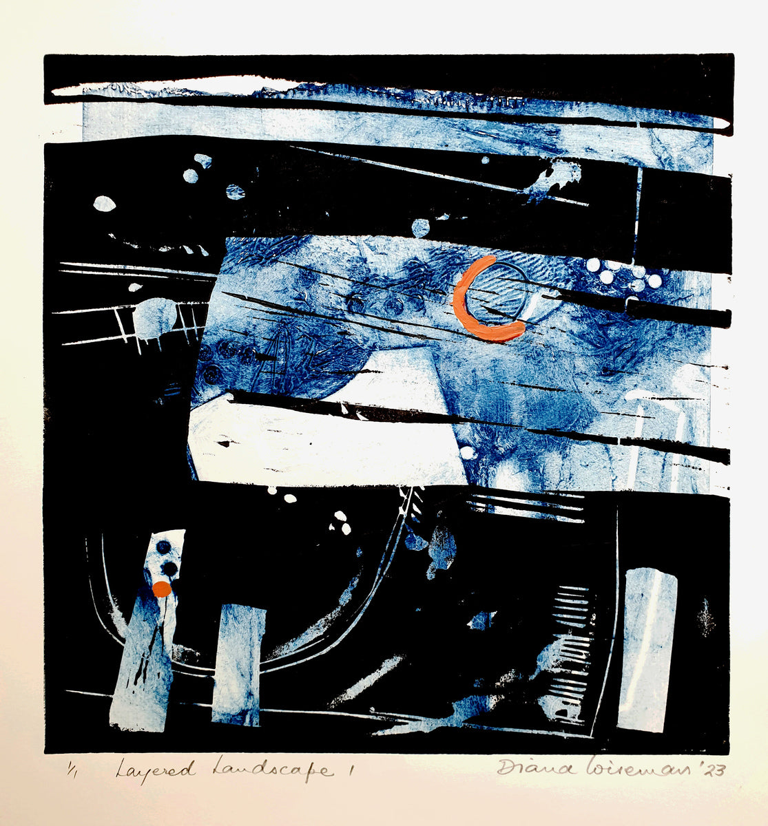 Linocut over monoprint on paper 1/1